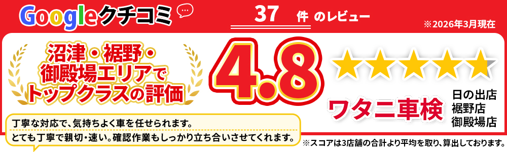 沼津 裾野 御殿場で格安車検4.3万!車検年3千台