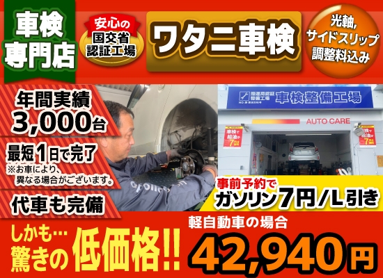 沼津 裾野 御殿場で格安車検4.3万!車検年3千台